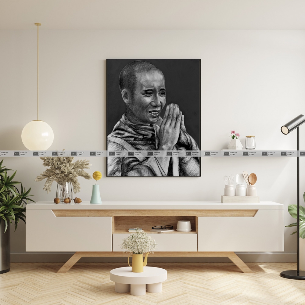 [TMT- 06]Tranh Sư Thầy Thích Minh Tuệ In Trên Giấy Mỹ Thuật Khung Gỗ Composite Nhiều Kích Thước 20x30, 30x40, 40x50cm